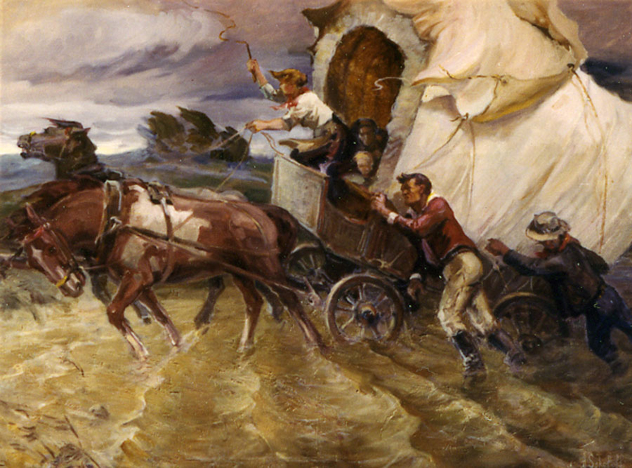The last part of his life and art work resides in the United States. During this period, he produced four monumental canvases, “General George Washington’s Winter March”, “The Battle of Bunker Hill”, Emissaries of Lord Cornwallis at General George Washington’s Headquarter”, and “Lexington” relating to American History. The artist a consummate draftsman, master of battle paintings vibrant, powerful and alive with movement of rearing and plunging horses, marked by vividly expressive figures and faces of both victors and vanquished. He completed the painting “Russian Merchants at Fort Ross”. President Gorbachev was presented with the painting by Rhea Serpan, President of the San Francisco Chamber of Commerce and Governor Deukmejian in San Francisco in 1990. Many of his pieces embraced wide ranges of everyday life in the United States.